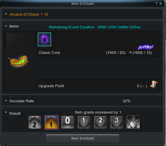 For Chaos gear, the event applies only between +15 and +20, with reduced Chaos Core requirements.